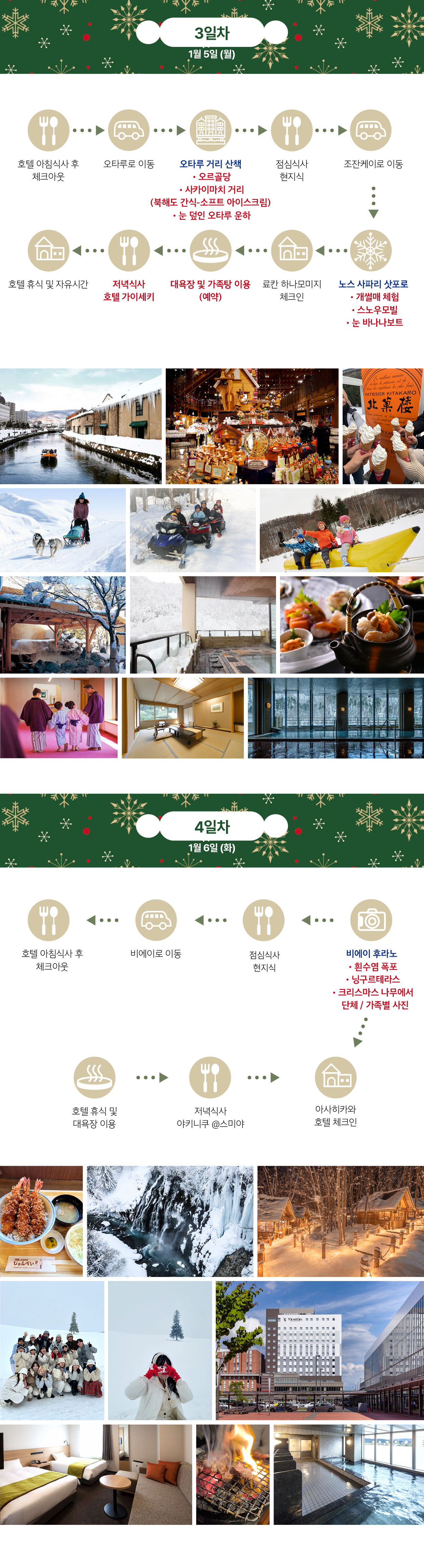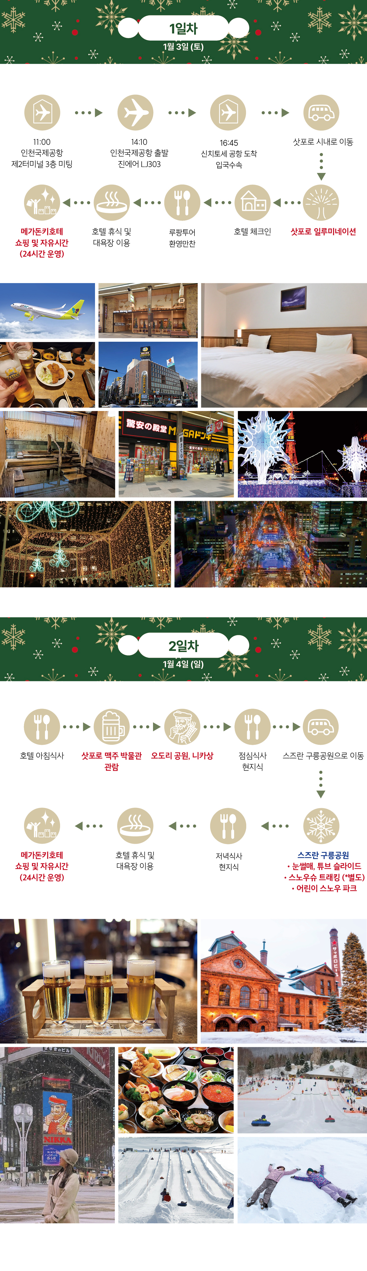 • 준특급 삿포로 2박 (조식 포함), 준특급 아사히카와 1박 (조식 포함)