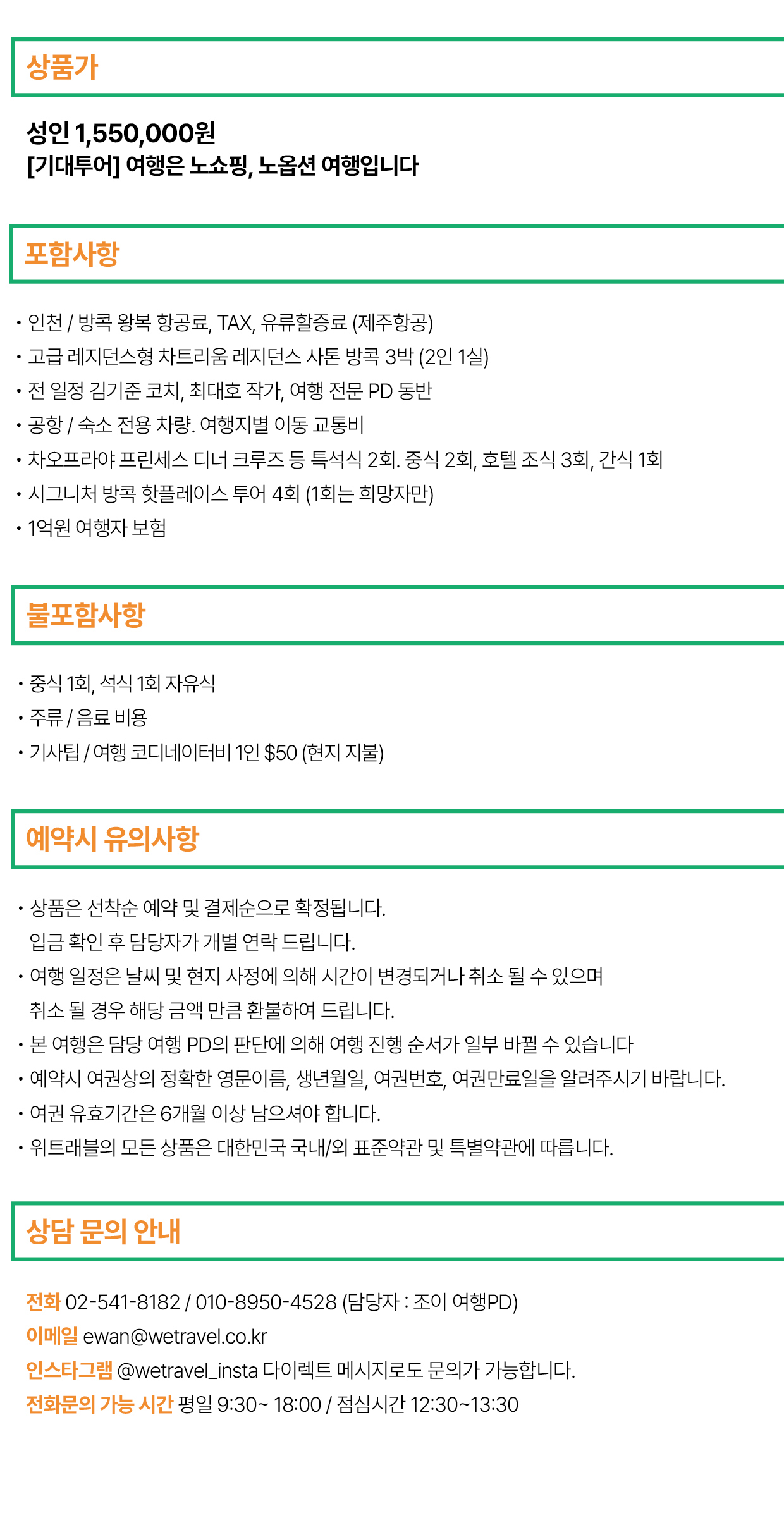 - 취소/환불 규정은 위트래블 홈페이지 메인 하단에 명시되어 있습니다.