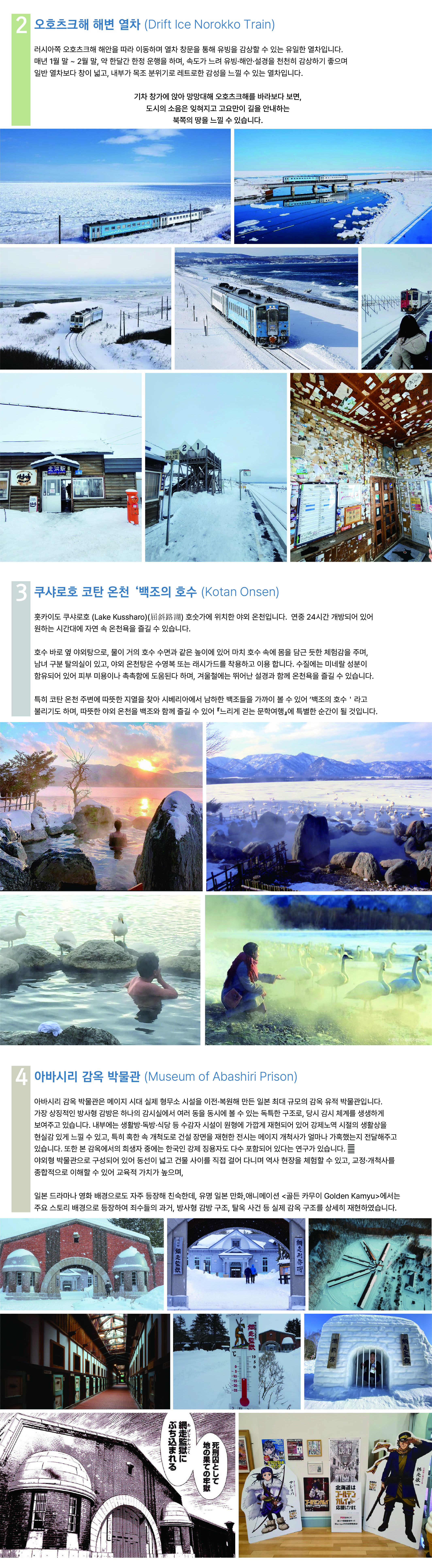 • 아바시리 감옥 박물관, 오비히로 미술관 등 각종 입장료