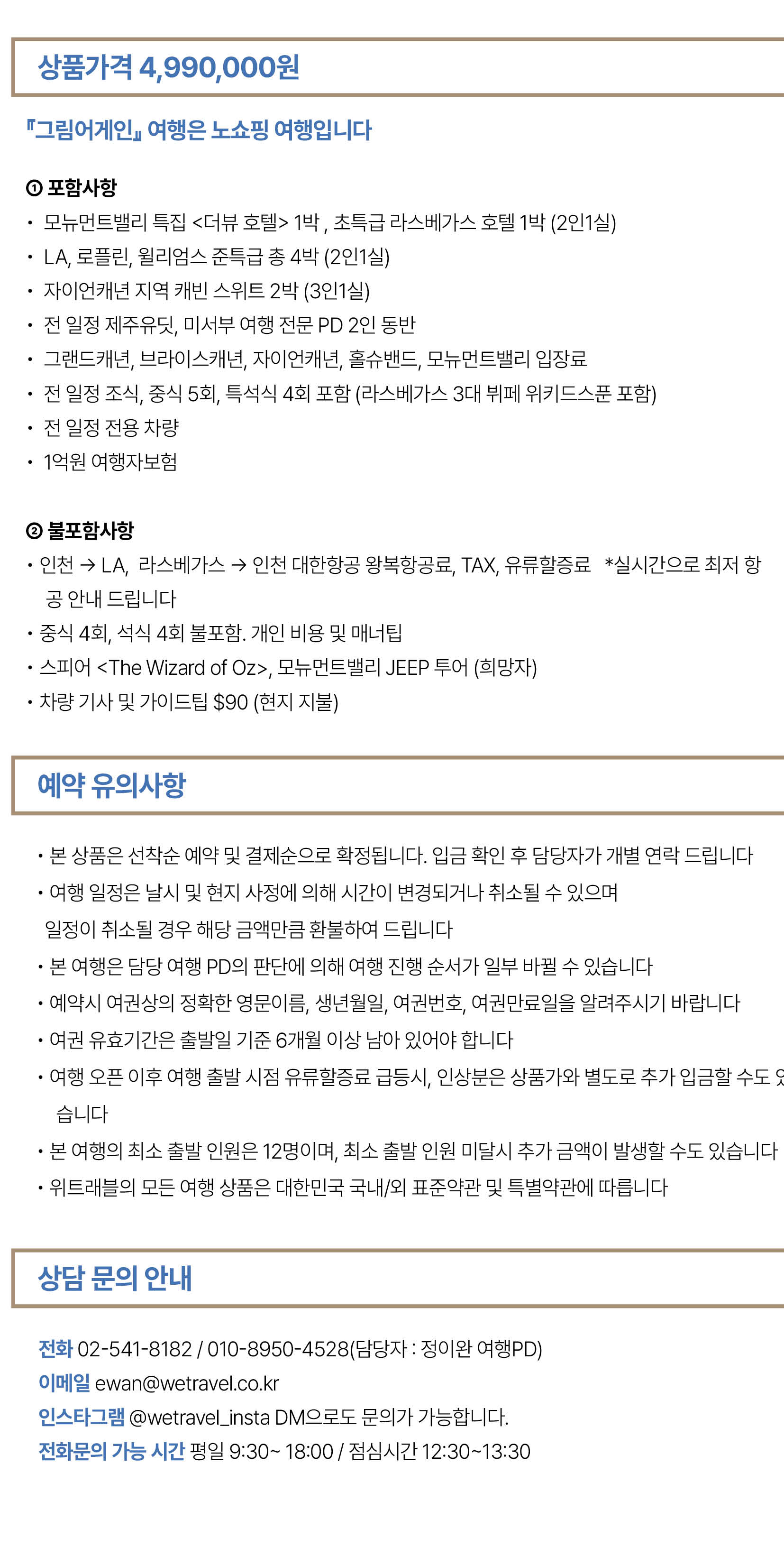 • 전 일정 제주유딧, 미서부 여행 전문 PD 2인 동반