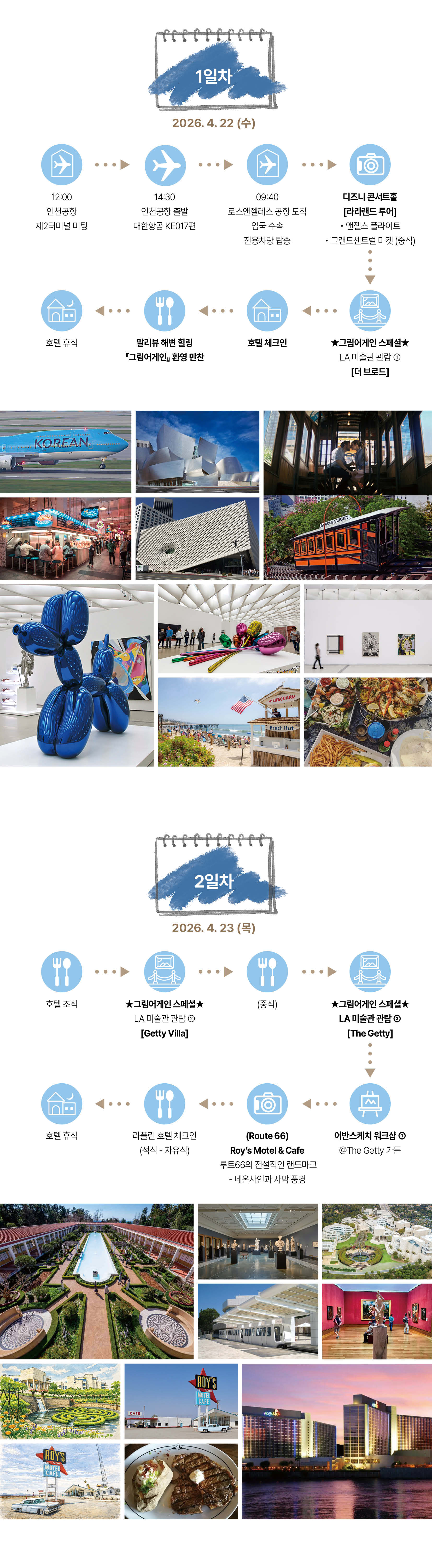• <The Broad> <The Getty> <The Getty Villa> 미술관 등 각종 입장료