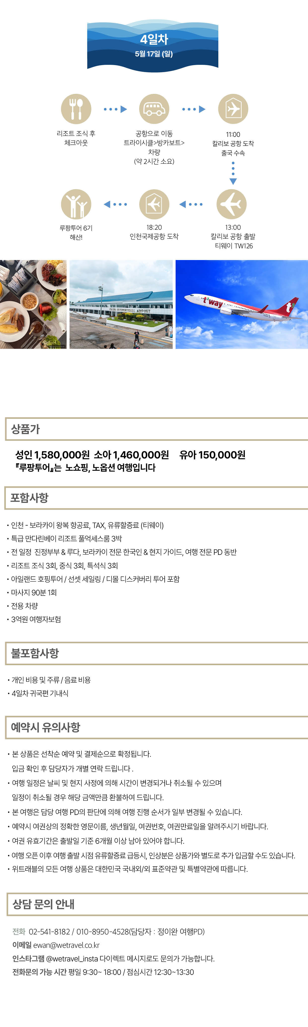 상품가격 1,580,000원 (성인) 1,460,000원 (소아) 150,000원 (유아) *유아는 여행 신청 후 별도 연락주세요