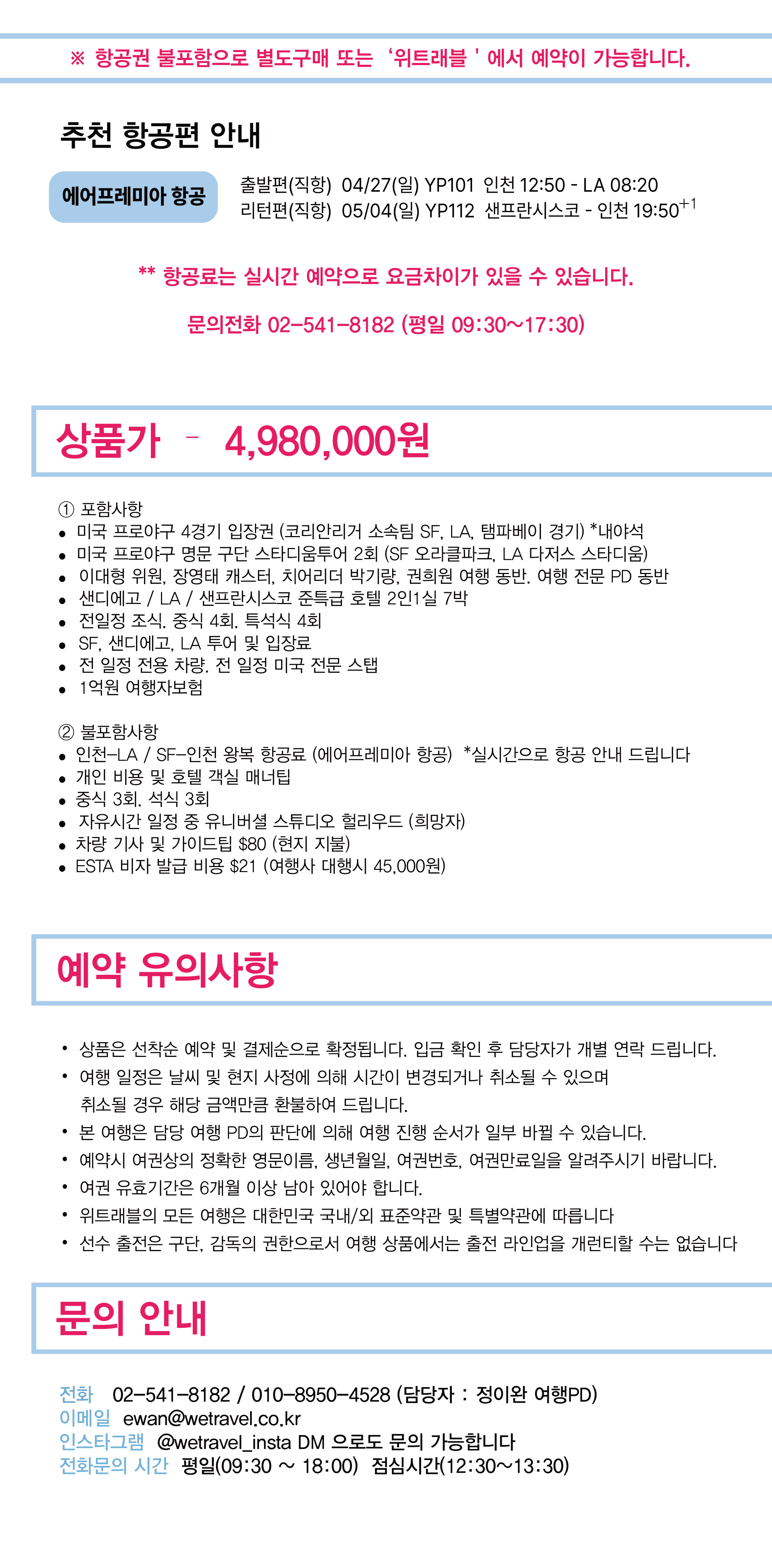 『미국야구 트래블』 서부 편 - 이대형•장영태•박기량•권희원 동반BESTMDHOTSOLDOUT